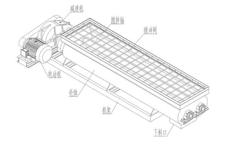 雙軸攪拌機(jī)攪拌區(qū)域內(nèi)裝有旋轉(zhuǎn)反向的漿葉,漿葉成一定角度將物料沿軸向、徑向循環(huán)翻攪,使物料迅速混合均勻。主要用于預(yù)加水成球工藝流程中,當(dāng)定量的生料粉由下料口流入攪拌糟中,經(jīng)若干個(gè)具有一定壓力的水霧化撒向生料粉,由定性長度的軸經(jīng)攪拌葉攪勻后形成含水一致的球核,并輸送到預(yù)加水成球盤中去,整個(gè)攪拌分為霧化區(qū),拌勻區(qū)、卸料區(qū)三個(gè)區(qū)域。攪拌葉上焊硬質(zhì)金刀頭,耐磨性能好;適合于兩種以上肥料,添加劑預(yù)混料得混合,及配合飼料、濃縮飼料、添加劑預(yù)混飼料等的混合。
